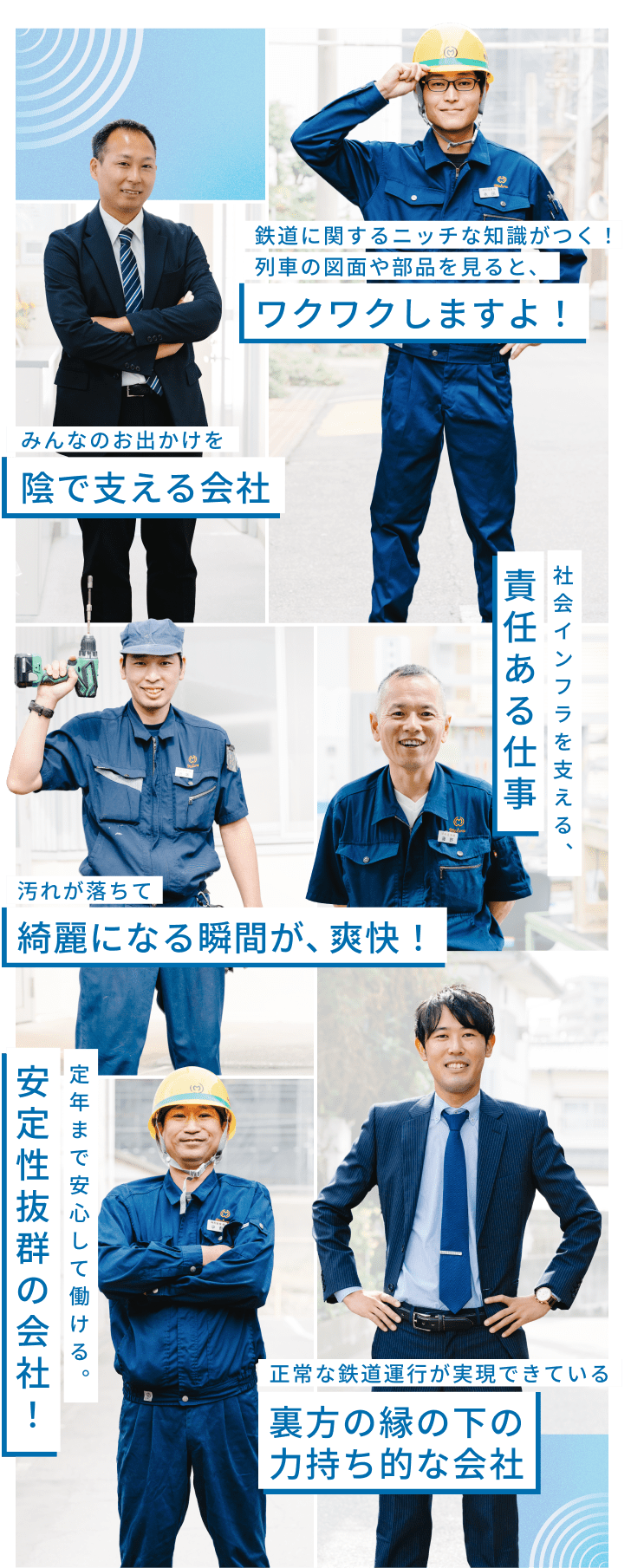 そんな安心安全な鉄道の運行を陰で支えるのが、明和産業で働くスタッフたちの愛と技なのです。