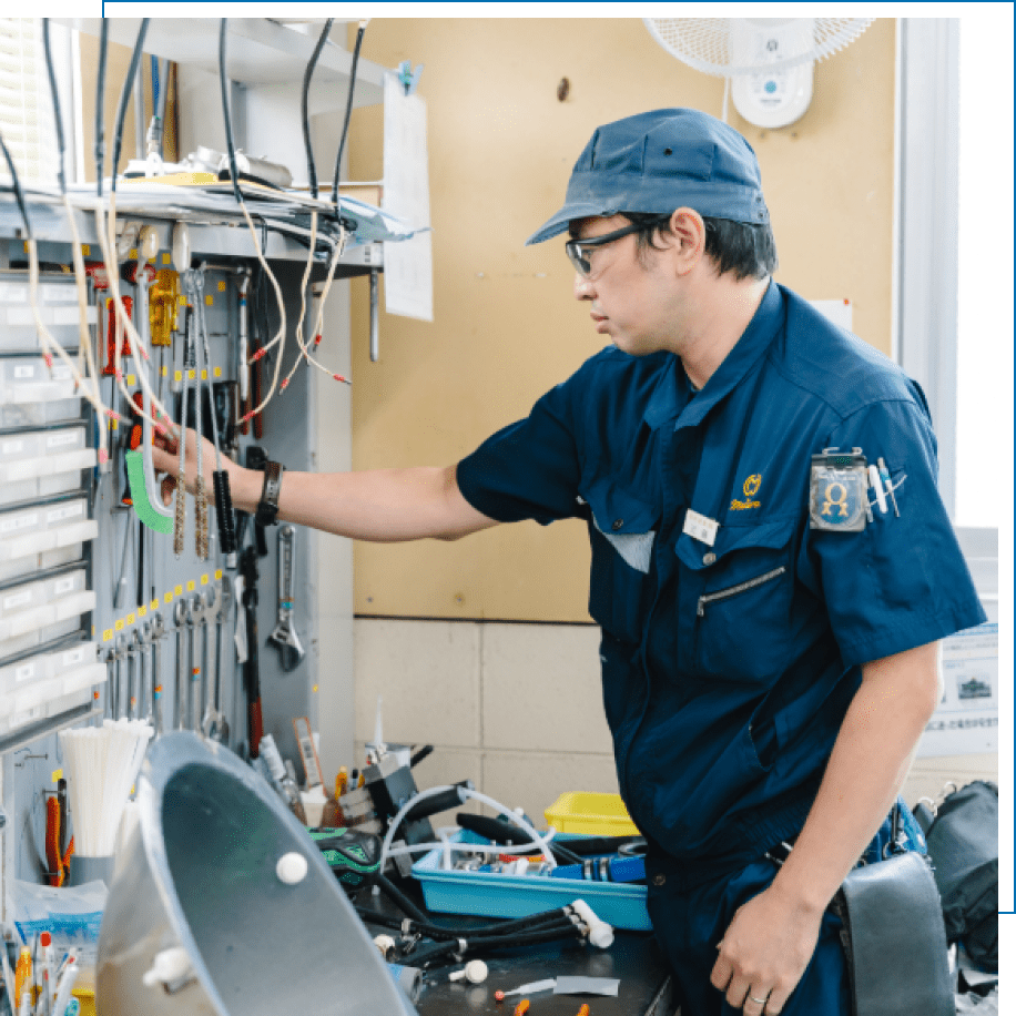 それに1年間の点検工程が決まっているので、繁忙と閑散の見通しもつきやすい。それが働きやすさにつながっていると思うことも多いですよ。平日は遅くとも19時過ぎには帰宅して、妻と一緒に食卓を囲んでいますし、土日の休みはのんびりショッピングをしに小倉駅まで行くこともあります。残業はありますが、週末はほとんど定時で上がります。こんな環境だからでしょうね。ずっと、定年まで働き続けたいって思っています。